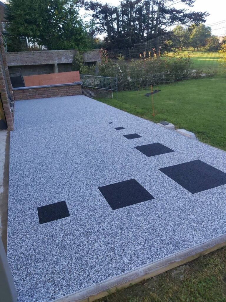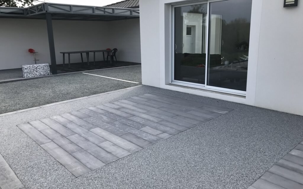 4. Résistance et fonctionnalité Ce matériau est conçu pour résister aux intempéries : il offre une bonne adhérence, est antidérapant, drainant et a une longue durée de vie.