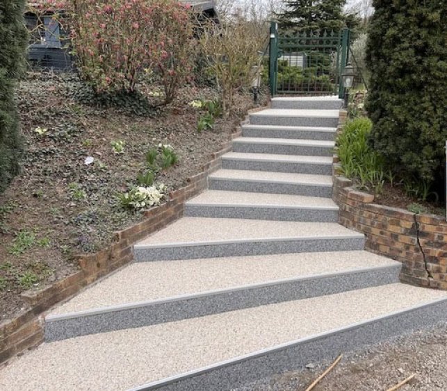 Idéale pour rénover des vieilles pierres, la moquette de pierre unifie parfaitement les sols, qu’il s’agisse de terrasses en ardoise, de chapes en béton, d’allées en ciment ou d’escaliers. Les résines époxy et polyuréthane utilisées garantissent la durabilité de votre moquette de pierre au fil du temps.